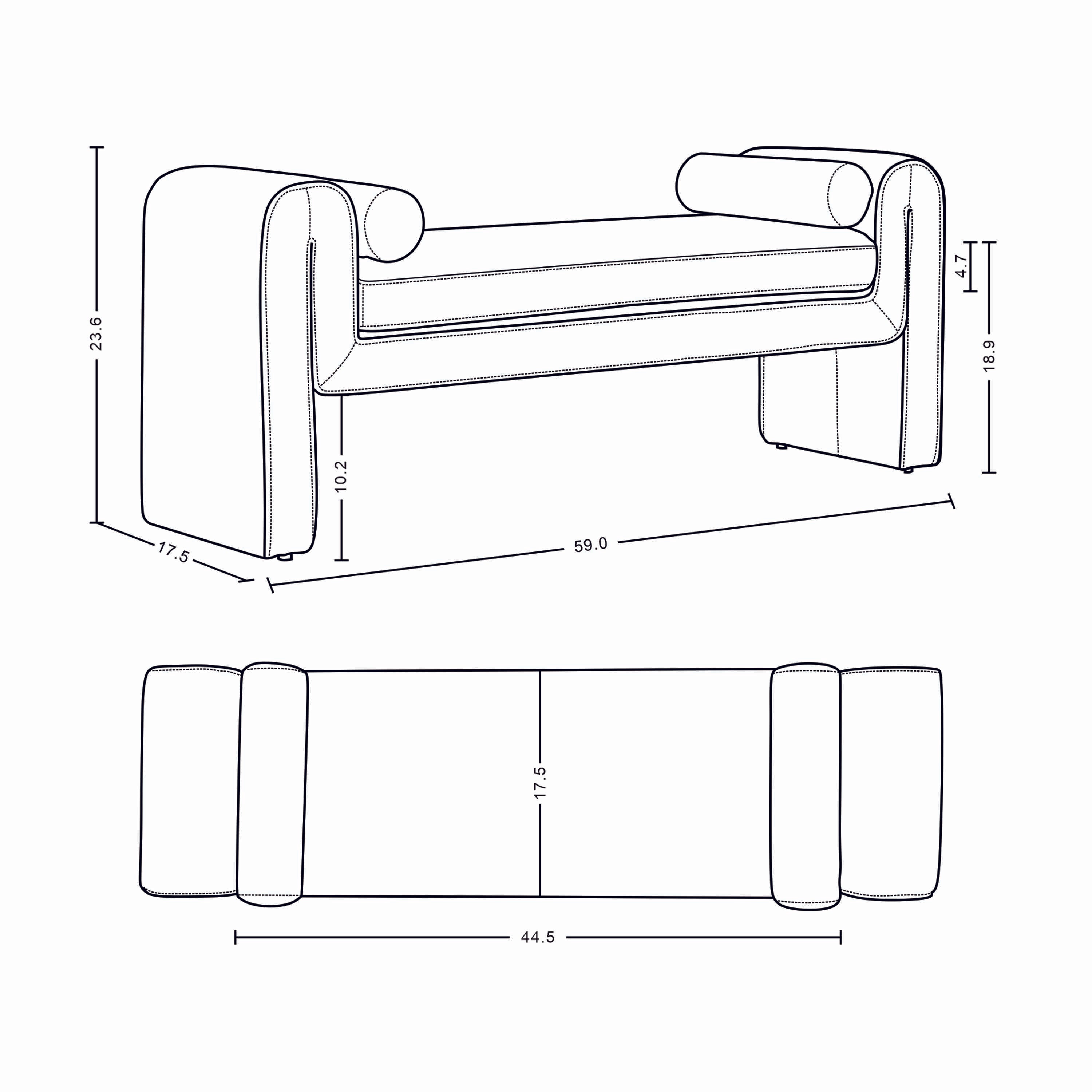 - Accent Bench Dimensions Measure: 59 in. Length, 23.6 in. Height, 17.5 in. Depth.