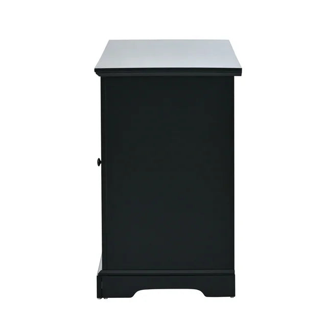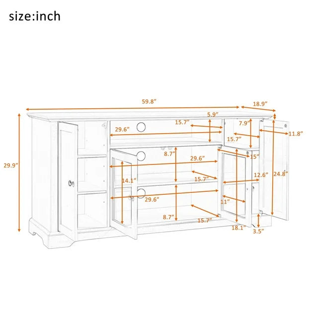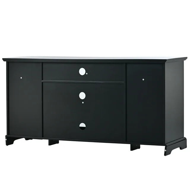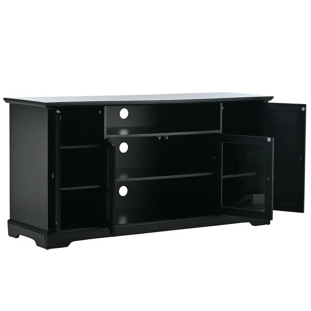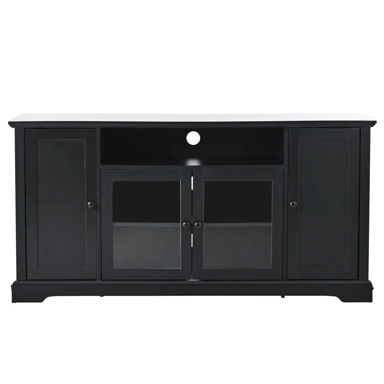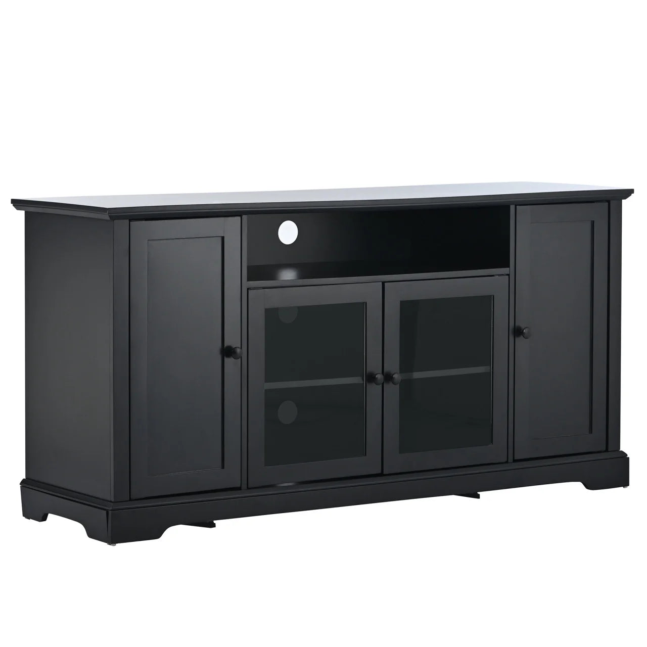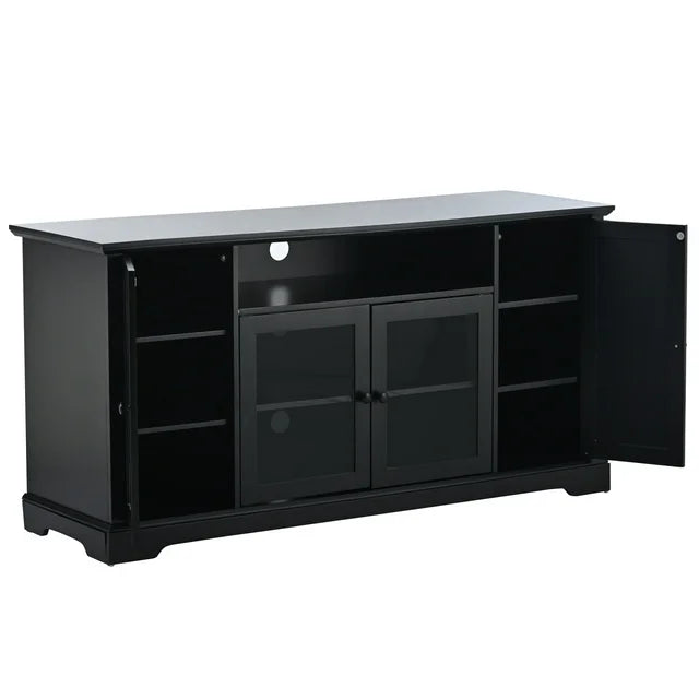 TV Stand for TV up to 65in, 59.8" Tall Entertainment Center with 2 Tempered Glass Doors Adjustable Panels Open Style Cabinet, Modern Media Console Wood Television Stand for Living Room, Black
