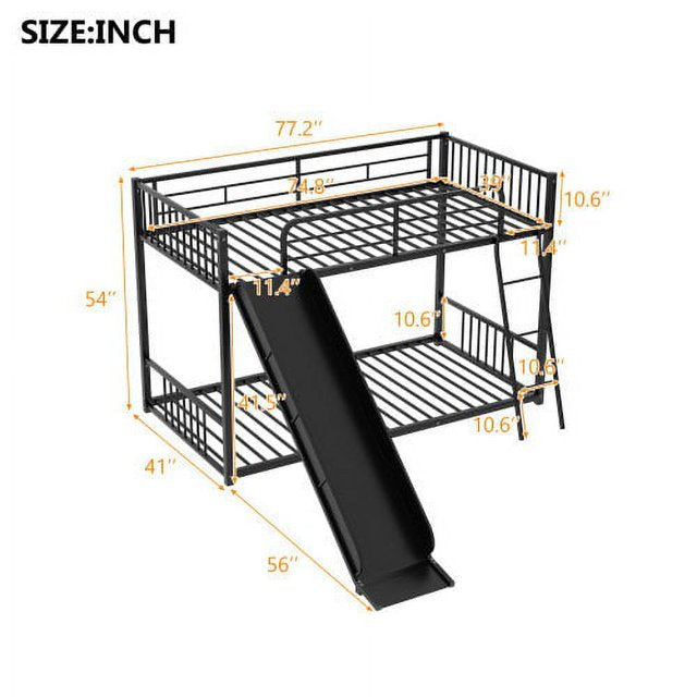 Twin Bunk Beds for Kids, Metal Bunk Bed with Slide, No Box Spring Required (Black Low Bunk Beds with Slide)