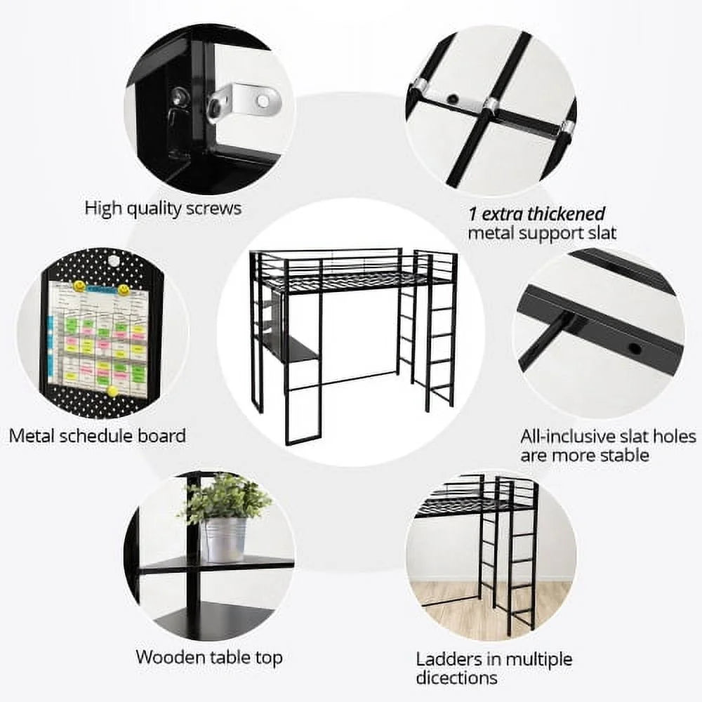 - 【Loft Bed with Desk】This twin loft bed comes with a desk used for work or study and a schedule board in front of the desk where you can put some study schedules or sticky notes to remind yourself.With 58.3 inches of space under the bed, you can turn the space into a clever workstation, reading corner or craft area. Perfect for space-saving needs.