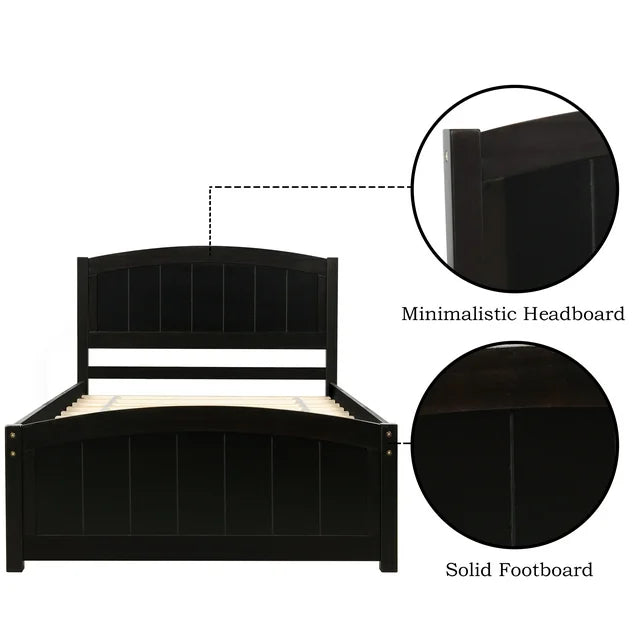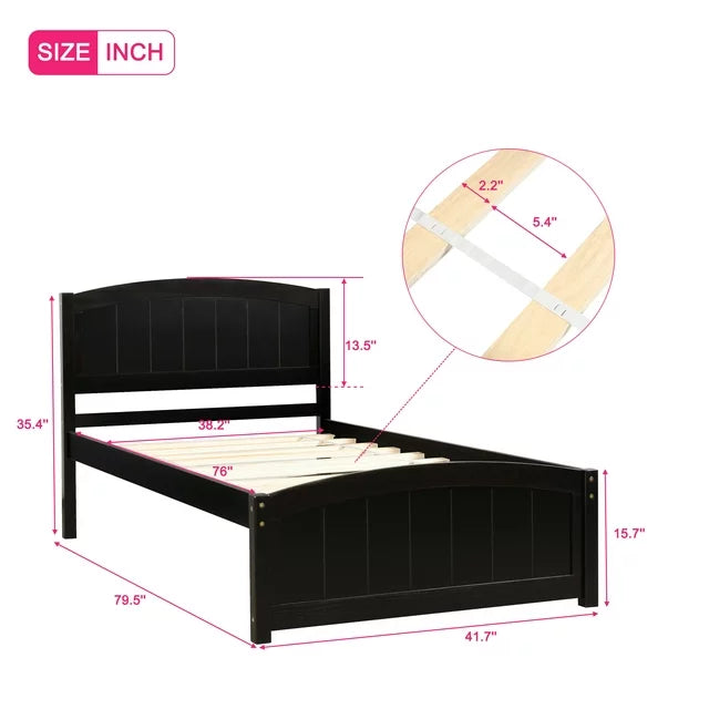 Twin Size Bed Frame for Kids Girls Adults, Wood Platform Bed with Headboard, Footboard and Wood Slat Support, Sleigh Bed for Bedroom, Space Saving Design, No Box Spring Needed, Espresso