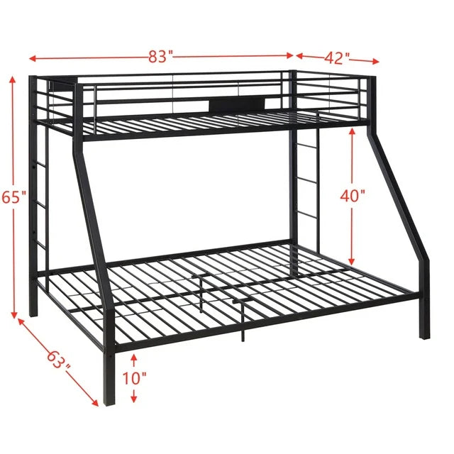 Twin XL Over Queen Bunk Bed,Heavy Duty Metal Bunk Bed Frame with Safety Guardrail and 2 Built-in Ladder,Metal Bunk Bed for Kids Teens Adults Bedroom,Black