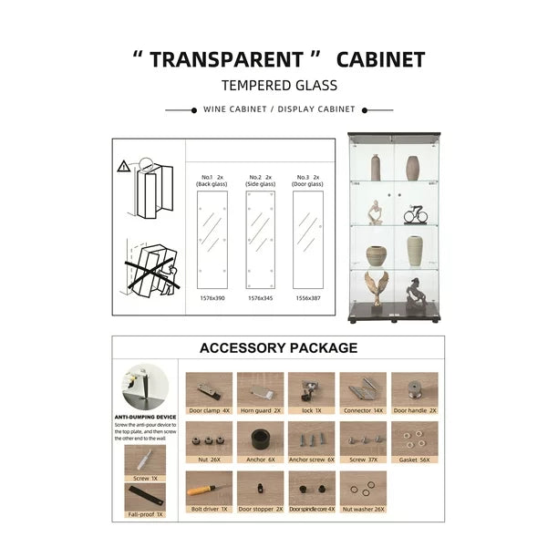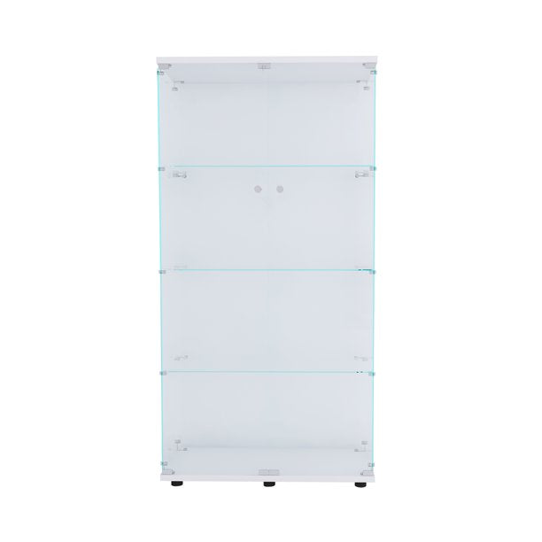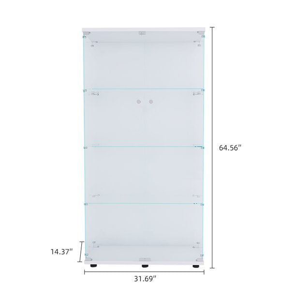 Two-door Glass Display Cabinet 4 Shelves with Door, Floor Standing Curio Cabinet Bookshelf, Tempered Glass Storage Organizer for Living Room, Bedroom and Office, 64.56” x 31.69”x 14.37”, White