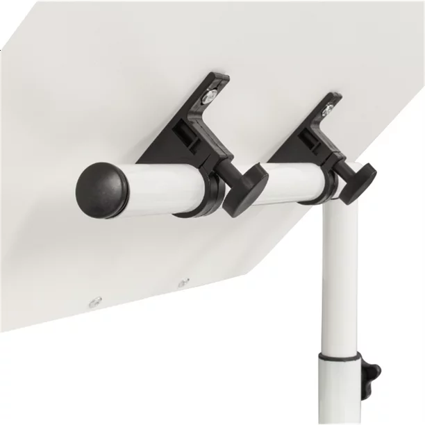- [Height Adjustable & Easy to Move] Top panel swivels 360 degrees laterally and vertically; Height of top panel is adjustable from 27 inch to 35 inch; Swivel casters provide long lasting stability and allows table to be moved easily; Anti-slip strips on the panel keeps everything on it safe; There is a Q-type clip on the back of the panel to keep your cables neat; Surface is easy to keep clean.