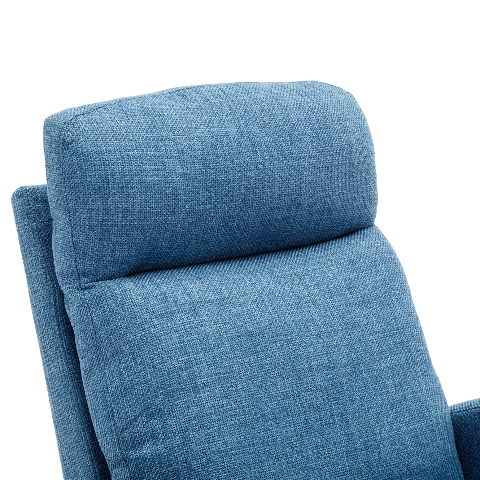 Upholstered Nursery Rocking Chair Indoor, Accent Glider Rocker with Headrest, Side Pockets and Wood Base, Comfy Lounge Single Sofa Chair for Living Room, Bedroom, Weight Capacity 300 Pounds, Blue