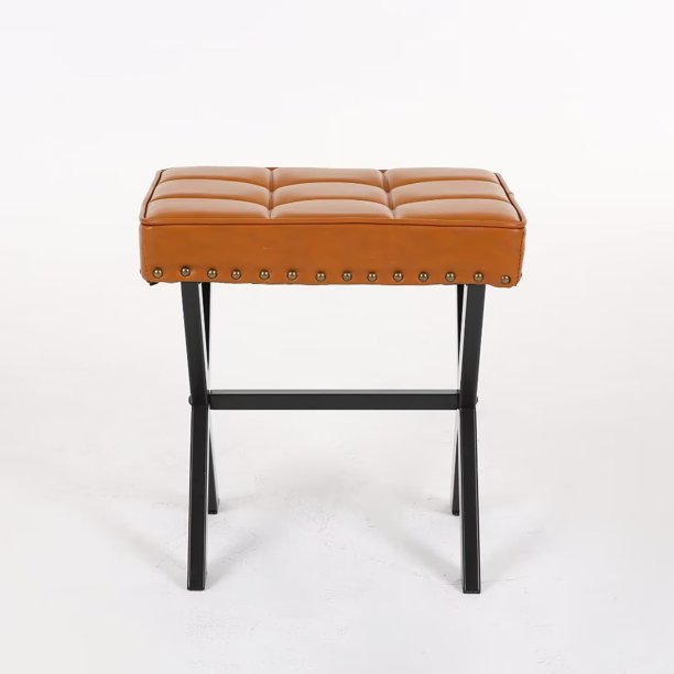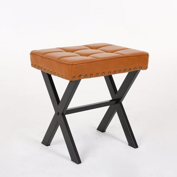 Upholstered Ottoman Bench,Contemporary Ottoman with X-Shaped Metal Legs and Thick Cushion,Shoe Changing Chair for Patio Bedroom Living Room Hallway,Brown