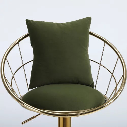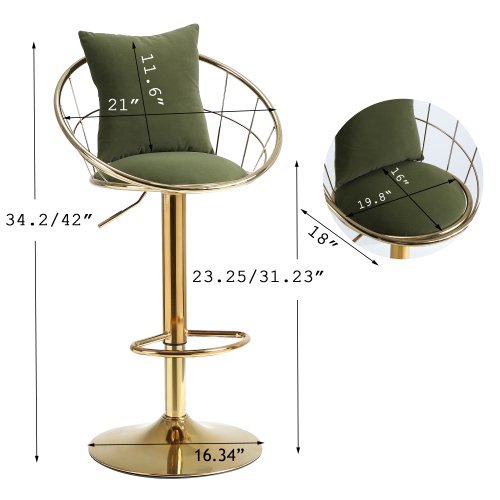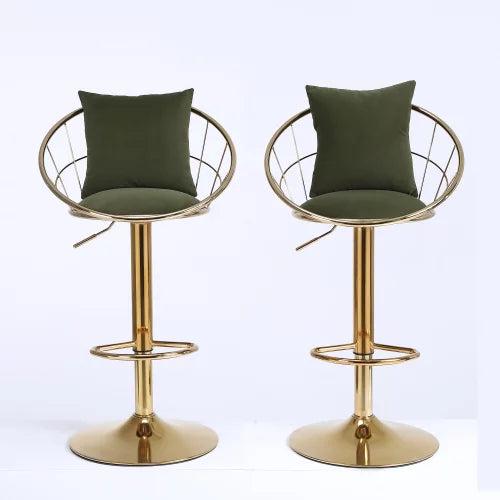 Velvet Bar Stools Set of 2 Adjustable Counter Stools Barstools with Back and Footrest Modern Pure Gold Plated 360 degree Rotation Bar Chairs for Kitchen Bistro Pub Dining Room, Green