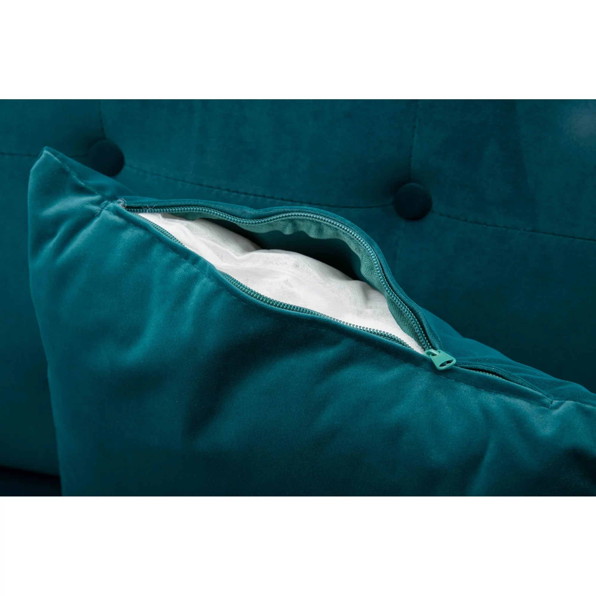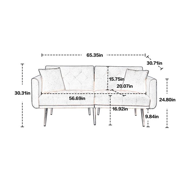 Velvet Futon Sofa Bed with 2 Pillows, Convertible Sleeper Couch Bed with Metal Tapered Legs and Tufted Button Back, Modern Loveseat for Living Room, Bedroom, Teal Blue