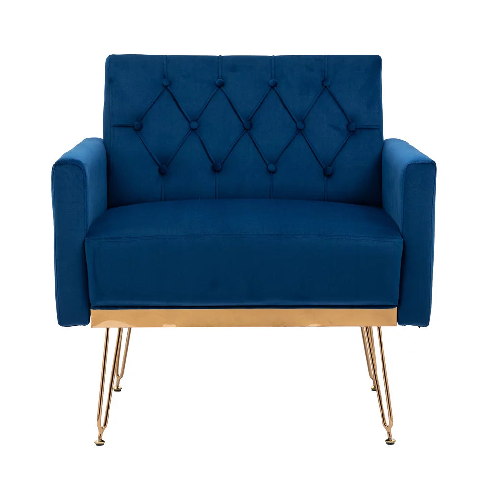 - [Modern and Elegant Style] The combination of sleek lines and gold tapered metal legs add elegance and style to the velvet sofa. The tufted button design shows off the mid-century vintage style. You can put the single sofa chair in your living room and reception room to serve your guests, as well as on your balcony to enjoy your own leisure time. The leisure chair has a different color to choose.