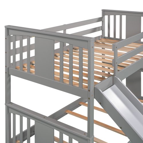 win Over Twin Bunk Bed with Slide and Ladder, Solid Wood Low Bunkbeds for Toddlers/Kids/Teens, White